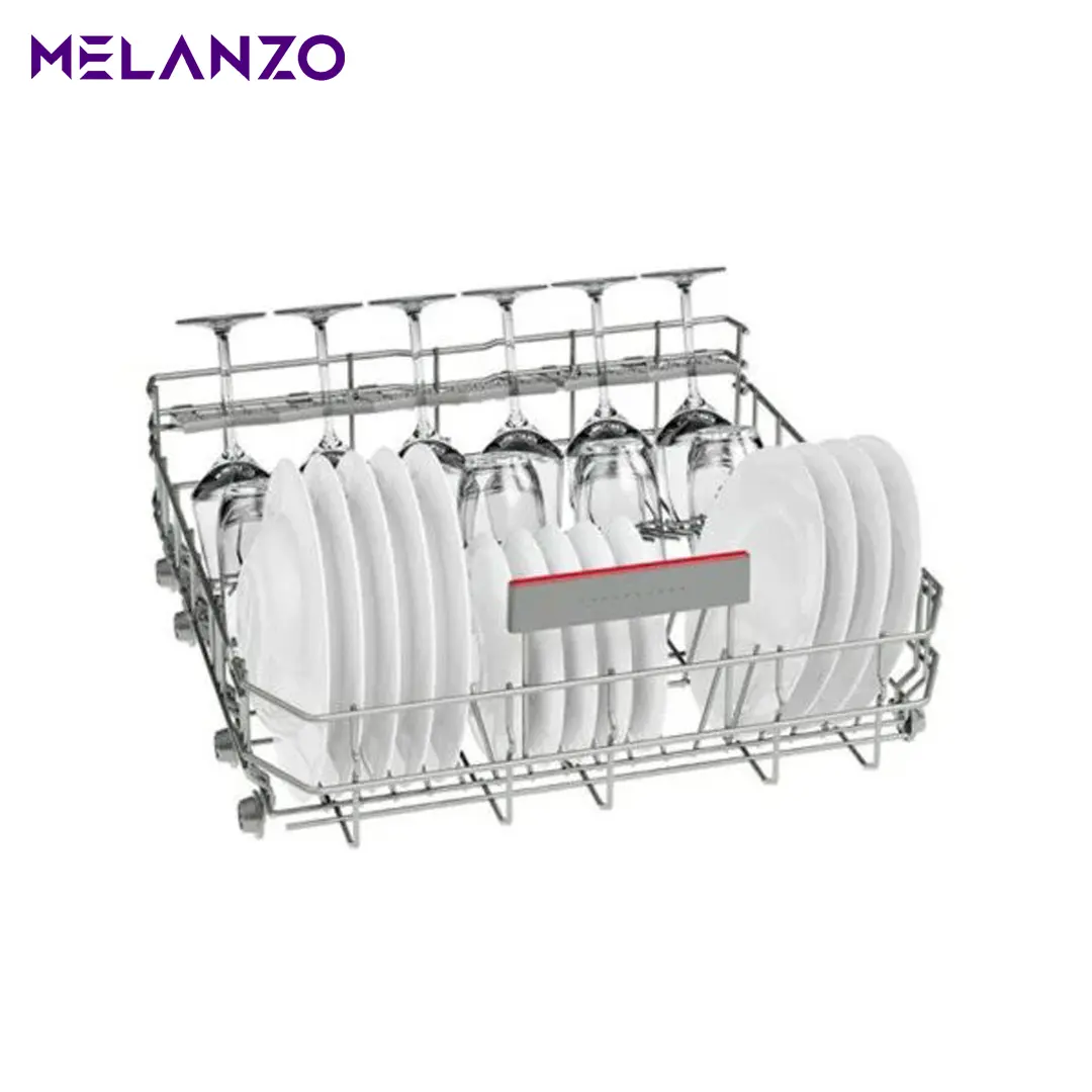 ماشین ظرفشویی Bosch SMS46NI01B ترکیبی از ظرافت و عملکرد حرفه‌ای است؛ ظرفیت ۱۳ نفره همراه با عملکرد کم‌صدا ۴۶ دسی‌بل آن را برای استفاده روزمره ایده‌آل ساخته‌اند. مصرف آب فقط ۹٫۵ لیتر در برنامه اقتصادی به همراه سیستم خشک‌کن Heat Exchanger ظروف را به‌خوبی خشک نگه می‌دارد. امکاناتی مثل AquaSensor، Load Sensor، فیلتر خودپاک‌شونده، و سبد بالایی قابل تنظیم ارتفاع، انعطاف در قرار دادن ظروف را بالا می‌برد؛ ضمن نشانگر نمک و باقی‌ماندن زمان برنامه، کاربری ساده و شفاف را تضمین می‌کند. با پوشش استیل برس‌خورده‌ی ضد اثر انگشت و ابعاد استاندارد ۸۴٫۵×۶۰×۶۰ سانتی‌متر، این مدل یک انتخاب شیک و کاربردی برای هر آشپزخانه‌ای است.