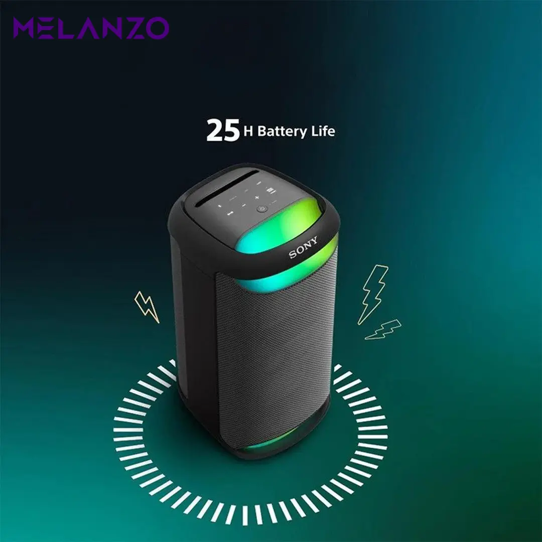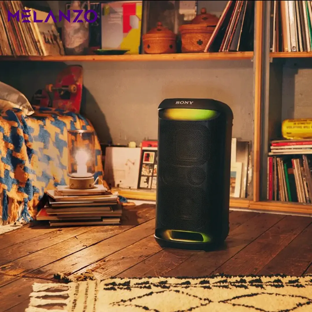 با Sony SRS-XV500 هیجان را به مهمانی بیاور: صدای قدرتمند با فناوری X-Balanced و MEGA BASS، نورپردازی محیطی جذاب، امکانات کارائوکه (ورودی میکروفون و گیتار) و باتری تا ۲۵ ساعت پخش مستمر. طراحی عمودی زیبا با دسته داخلی، انتقالش را آسان کرده و مقاومت IPX4 خیال را از رطوبت سبک راحت میکند. ابعاد: ۲۶۹ × ۵۶۴ × ۲۹۴ میلیمتر (عرض × ارتفاع × عمق) و وزن ۱۱.۲ کیلوگرم — همهاش برای اجرای عالی مهمانی!