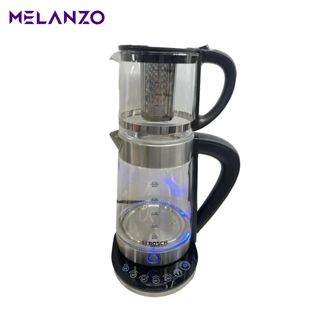 با Bosch WB-129TS لحظه‌های چای‌نوشی‌تان را به تجربه‌ای حرفه‌ای و لذت‌بخش تبدیل کن. شیشه شفاف و فیلتر استیل، ظاهر چای را زیبا و طعم آن را پایدار نگه می‌دارد. سیستم لمسی، گرم نگه‌دار و خاموشی خودکار، استفاده مطمئن، سریع و بدون نگرانی را فراهم می‌کنند. انتخابی لوکس، کاربردی و با طول عمر برای فضای مدرن خانه یا محل کار.